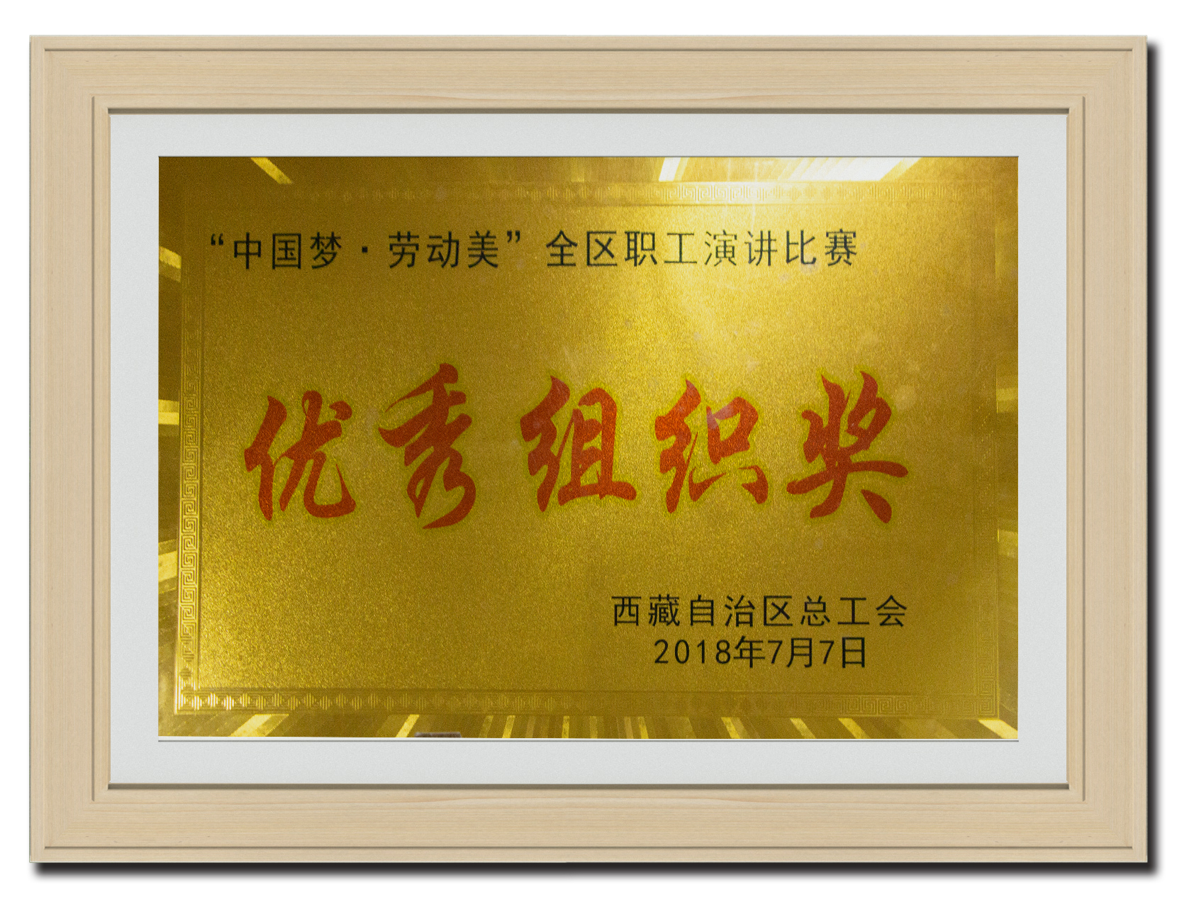 2018年7月 “中國夢·勞動美”全區(qū)職工演講比賽《優(yōu)秀組織獎》
