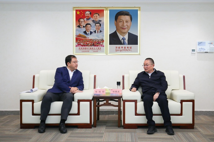 祁騰武對張旭陽一行來訪表示歡迎,并介紹了西藏開投集團概況、生產(chǎn)經(jīng)營和投資建設(shè)情況。他表示,光大銀行作為國內(nèi)領(lǐng)先的綜合性金融機構(gòu),在綠色金融、創(chuàng)新金融服務(wù)方面具有顯著優(yōu)勢。西藏開投集團與光大銀行已有良好的合作關(guān)系,期待與光大銀行在多層次、多領(lǐng)域開展更加深入務(wù)實合作,歡迎光大銀行參與西藏開投清潔能源開發(fā)建設(shè),共同探索“科技賦能產(chǎn)業(yè)、金融助力發(fā)展”新路徑,助力地區(qū)經(jīng)濟社會發(fā)展和國家“雙碳”戰(zhàn)略目標(biāo)實現(xiàn)。