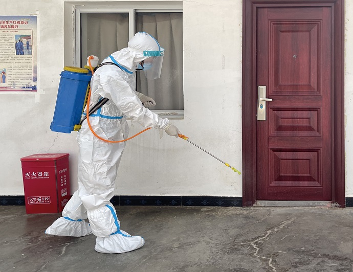 (生活區(qū)域消毒 李國海攝)