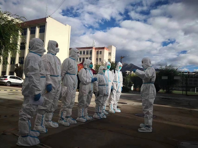 疫情就是命令。經(jīng)集團(tuán)公司黨委決策,委派副總經(jīng)理尼瑪帶領(lǐng)志愿服務(wù)隊(duì)以時(shí)不我待的緊迫感和高度的責(zé)任感,火速趕往城關(guān)區(qū)嘎瑪貢桑街道俄杰塘社區(qū),展開他們的“下沉”抗疫行動。