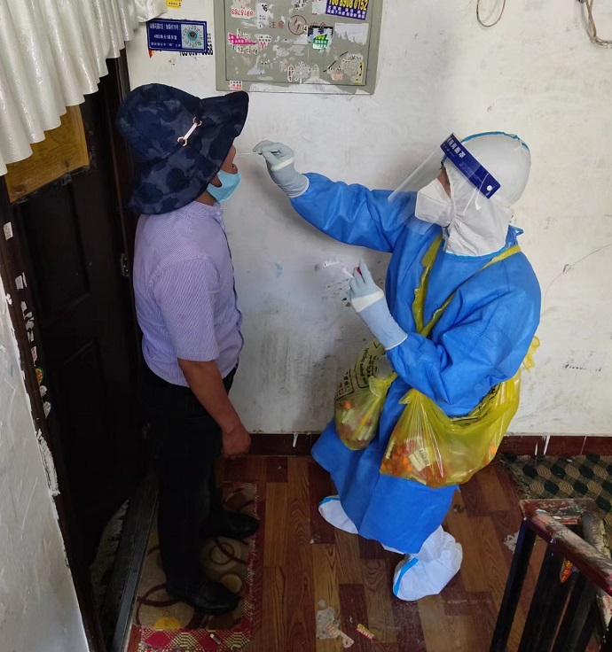 進(jìn)駐 “疫”線后,集團(tuán)公司副總經(jīng)理尼瑪親任志愿服務(wù)隊(duì)隊(duì)長,迅速組建后勤保障組、工作聯(lián)系組、防疫信息組、時(shí)事宣傳組,為做好志愿服務(wù)疫情防控工作提供組織保障。志愿服務(wù)隊(duì)各盡其職、團(tuán)結(jié)一心、分工協(xié)作。據(jù)統(tǒng)計(jì),截至9月26日,已完成米、面、糌粑等重要物資裝卸、轉(zhuǎn)運(yùn)45.98噸,完成新冠病毒核酸檢測7530人次,對陽性居住區(qū)進(jìn)行消毒消殺12戶。