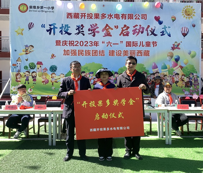 活動(dòng)現(xiàn)場舉行了“開投果多獎(jiǎng)學(xué)金”啟動(dòng)儀式及凈水設(shè)備捐贈(zèng)儀式。果多水電公司董事長、總經(jīng)理宋亞東表示,“開投果多獎(jiǎng)學(xué)金”的設(shè)立,旨在獎(jiǎng)勵(lì)品學(xué)兼優(yōu)的學(xué)生,鼓勵(lì)大家努力學(xué)習(xí),奮發(fā)向上,努力成長為國家的棟梁之材。柴維鄉(xiāng)小學(xué)校長代表全校師生對(duì)果多水電公司融入地方經(jīng)濟(jì)社會(huì)發(fā)展、支持教育事業(yè)、積極承擔(dān)社會(huì)責(zé)任的善舉表示衷心的感謝,并希望同學(xué)們將善舉轉(zhuǎn)化為學(xué)習(xí)、前進(jìn)的強(qiáng)大動(dòng)力,努力學(xué)習(xí),勵(lì)志成才,以優(yōu)異的成績回報(bào)社會(huì),努力成為對(duì)社會(huì)有用的人才。