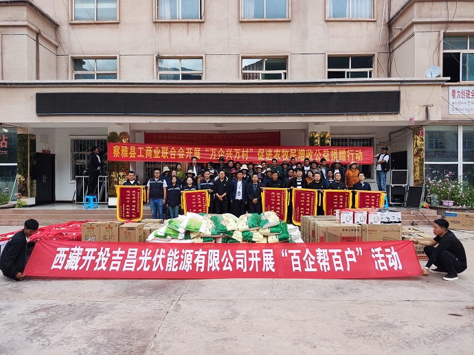 為深入貫徹落實市委二屆九次全會精神,落實《關(guān)于持續(xù)增加農(nóng)牧民收入的十條措施》舉措,9月21日,西藏開投吉昌光伏能源有限公司組織開展“百企幫百戶”結(jié)對幫扶活動。察雅縣工商聯(lián)主席鄧增旺扎、西藏開投吉昌光伏能源有限公司執(zhí)行董事李玲出席活動。