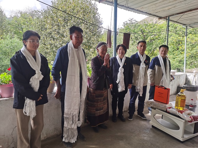 在活動中,嘎堆水電公司慰問了3戶嘎堆村的低保戶及五保戶。每到一戶,慰問組都會與老人促膝談心,細(xì)致了解他們的健康和生活狀況,鼓勵他們樹立信心,樂觀生活,積極克服困難。