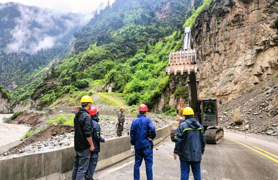 面對這一緊急情況,金橋水電站迅速啟動防洪度汛應(yīng)急預(yù)案,在雨中開展緊急修復(fù)工作?,F(xiàn)場工作人員身著雨衣,腳踩泥濘,專業(yè)技術(shù)人員對存在問題的廠壩線進行評估,制定出修復(fù)方案,工程技術(shù)人員也對隱患部位進行勘察和評估,全力應(yīng)對輸入桿的扶正、填土、夯實等一系列操作。雨中各種工程設(shè)備轟鳴作響,搶修人員們緊密配合,爭分奪秒地推進修復(fù)工作。