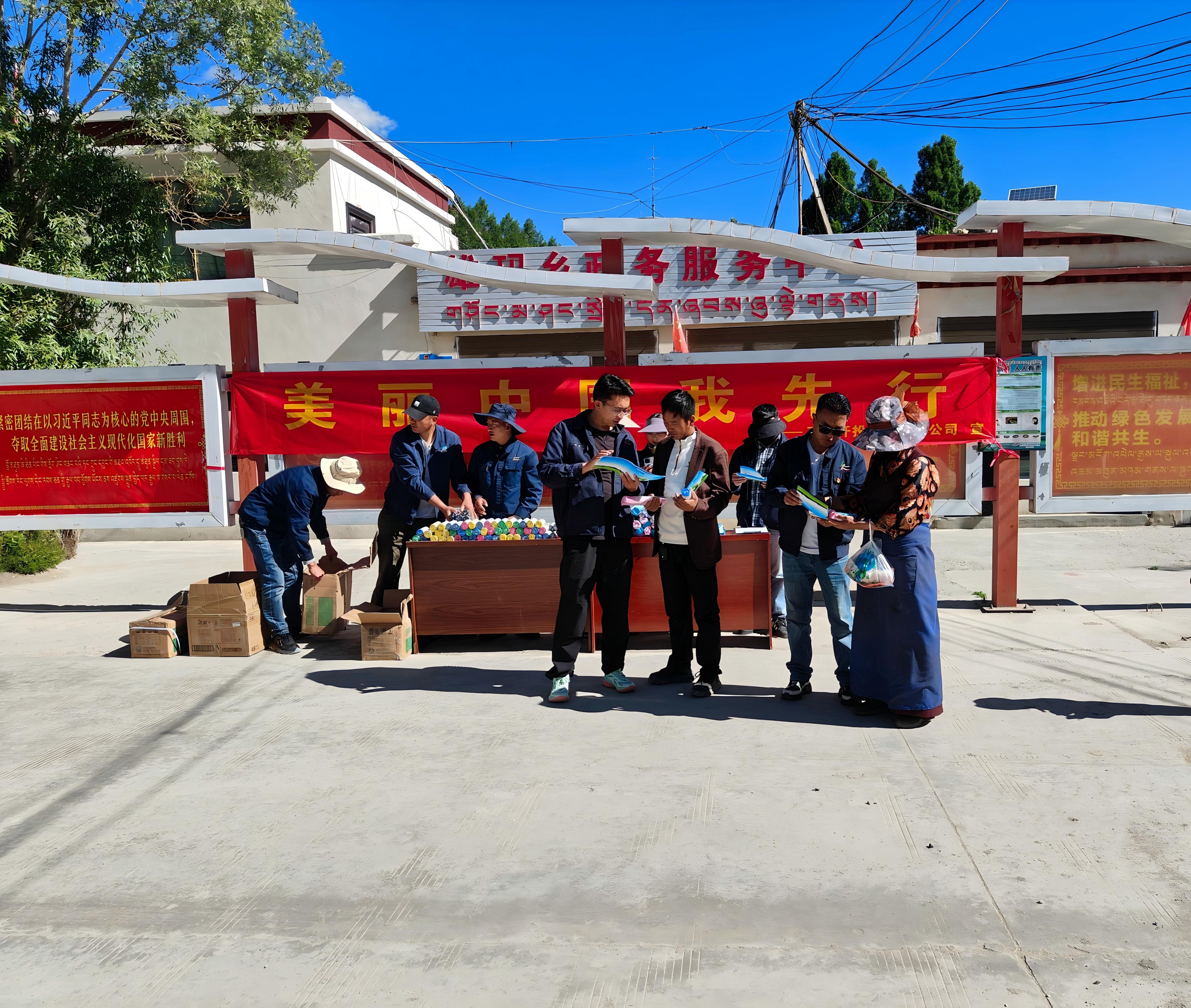 活動現(xiàn)場,公司宣傳人員向當(dāng)?shù)厝罕姲l(fā)放《習(xí)近平生態(tài)文明思想及環(huán)境保護(hù)宣傳手冊》,并細(xì)心講解。宣傳內(nèi)容涵蓋習(xí)近平生態(tài)文明思想及環(huán)境保護(hù)常識、水資源保護(hù)、水電可持續(xù)發(fā)展、自治區(qū)生態(tài)環(huán)保要求等。宣傳人員用通俗易懂的語言和表達(dá)形式,讓每一位群眾都能直觀了解到環(huán)保的重要性,活動現(xiàn)場氛圍熱烈。
