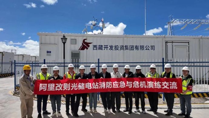 近日,西藏開投阿里清潔能源公司在集團(tuán)專家指導(dǎo)下,聯(lián)合改則縣應(yīng)急管理局、華為數(shù)字能源公司,在改則光儲(chǔ)電站開展了電化學(xué)儲(chǔ)能電池倉(cāng)事故應(yīng)急演練。
