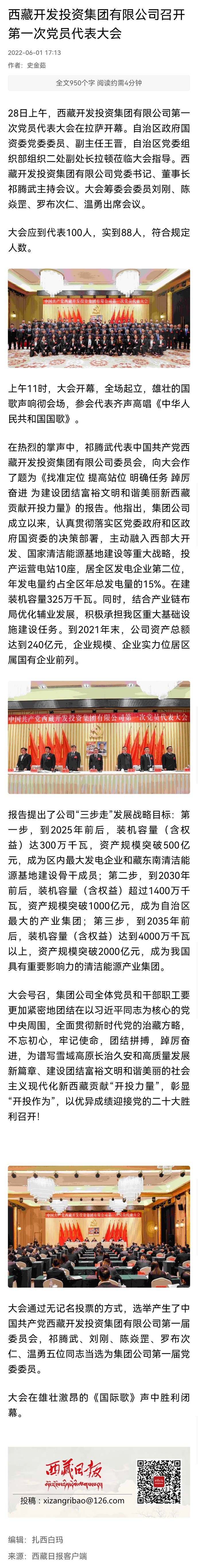 中國(guó)共產(chǎn)黨西藏開發(fā)投資集團(tuán)有限公司 第一次黨員代表大會(huì)
