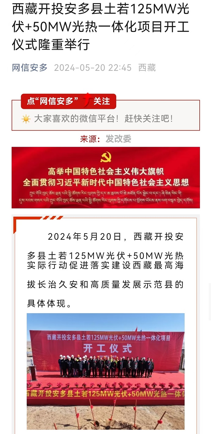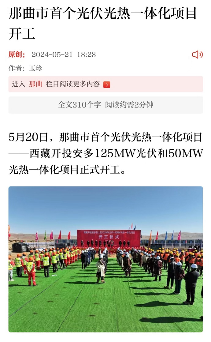 媒體報道丨那曲市首個光伏光熱一體化項目開工