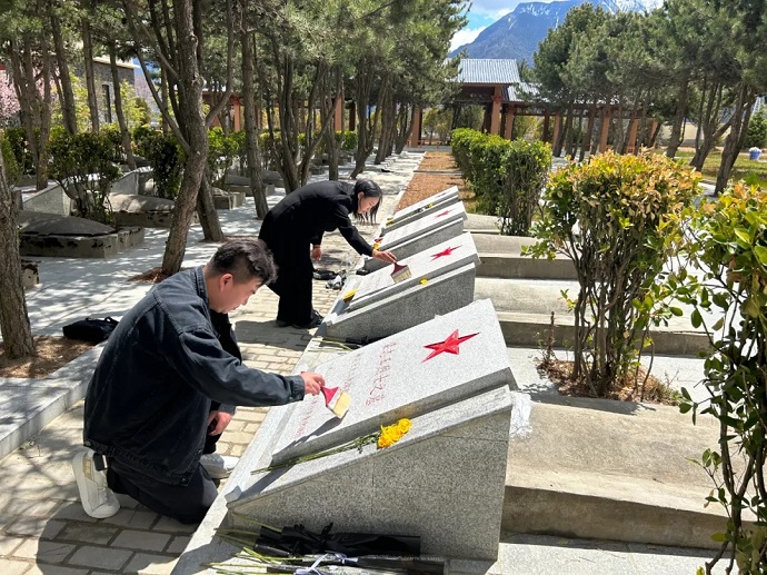 林芝市烈士陵園修建于1999年,共安葬烈士99名。這些革命烈士是在和平解放西藏、民主改革、中印自衛(wèi)反擊戰(zhàn)及社會主義建設(shè)時(shí)期,為保衛(wèi)國家和人民生命英勇犧牲的,為解放和發(fā)展西藏、保衛(wèi)邊疆、建設(shè)林芝做出了不朽的功勛,獻(xiàn)出了寶貴的生命。干部職工帶著對烈士們無限的緬懷和追思,在烈士墓葬區(qū)向各個(gè)革命時(shí)期英勇犧牲的烈士敬獻(xiàn)花束,并清掃了墓碑。