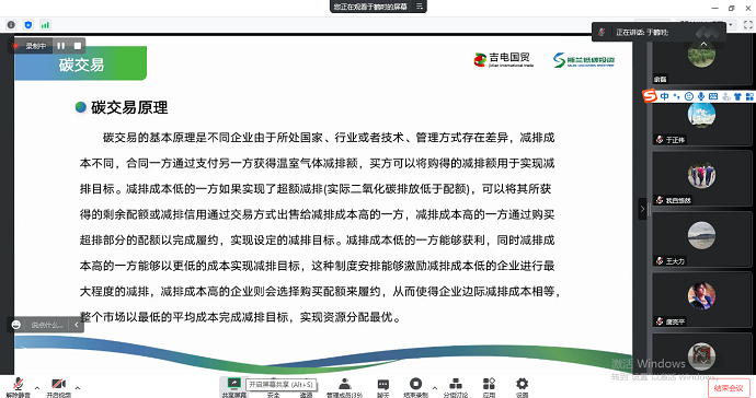 講座就“碳中和”國際背景、國家“碳達峰”“碳中和”目標和政策進行了深入解讀。對自愿減排項目的開發(fā)路徑、重點項目碳排放的核算、碳交易市場建設(shè)以及國際綠證開發(fā)等相關(guān)概念與實施的基本原則進行了講解與答疑。