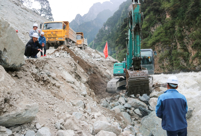 截至7月8日12時(shí),地方政府和我公司及各參建單位共組織投入裝載機(jī)、挖掘機(jī)、工程車等機(jī)具200多臺(tái)次,投工投勞800余人次。在地方政府的大力支持下、在金橋支部黨員突擊隊(duì)的帶動(dòng)下、在所有搶修人員的共同努力下,嘉黎縣至金橋水電站公路已基本搶通,電站建設(shè)的物資陸續(xù)運(yùn)至現(xiàn)場(chǎng),當(dāng)?shù)厝罕娚钴囕v緩慢通過(guò),沿途經(jīng)過(guò)的貨運(yùn)車輛、越野車輛紛紛減速鳴笛向飄揚(yáng)的共產(chǎn)黨員突擊隊(duì)隊(duì)旗致敬,向所有參與搶修公路的人員致謝。