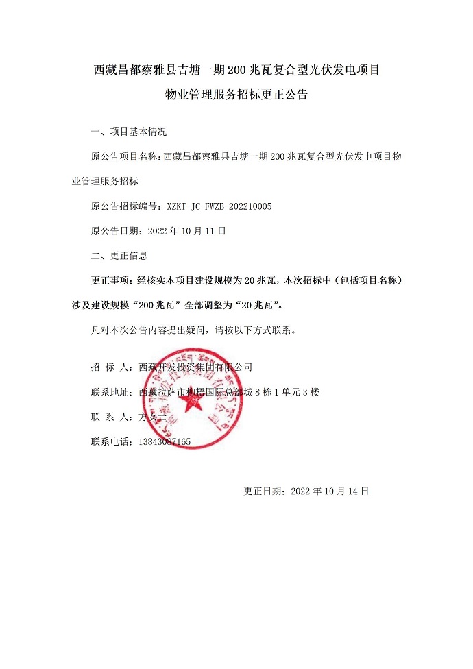 物業(yè)管理服務(wù)招標(biāo)更正公告