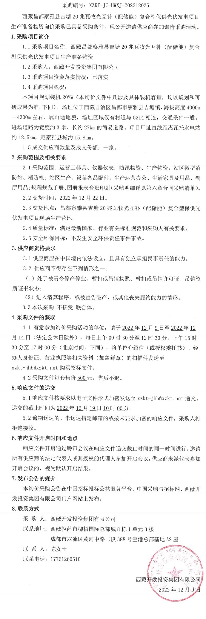 光伏發(fā)電項(xiàng)目生產(chǎn)準(zhǔn)備物資詢價(jià)采購公告