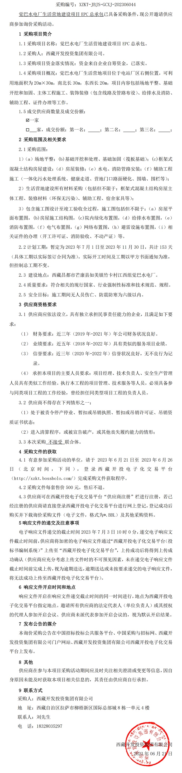 覺巴水電廠生活營(yíng)地建設(shè)項(xiàng)目EPC總承包詢價(jià)采購(gòu)公告
