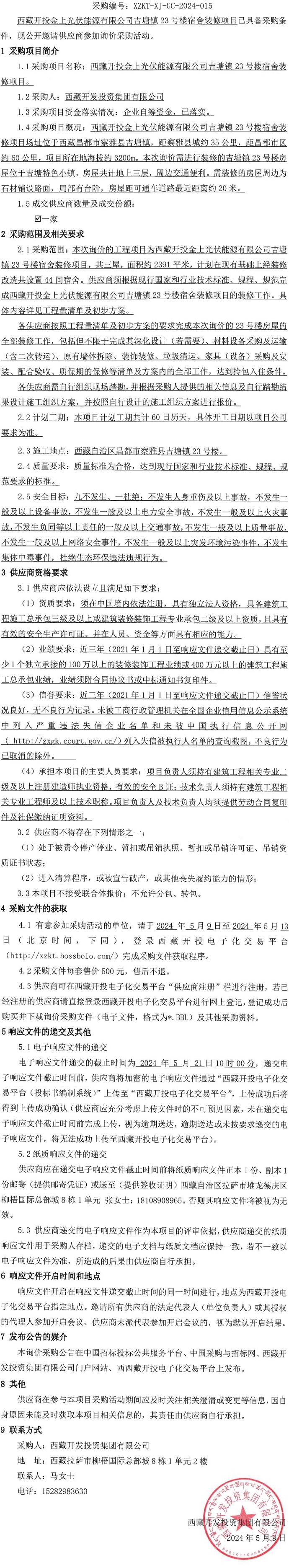 西藏開投金上光伏能源有限公司吉塘鎮(zhèn)23號樓宿舍裝修