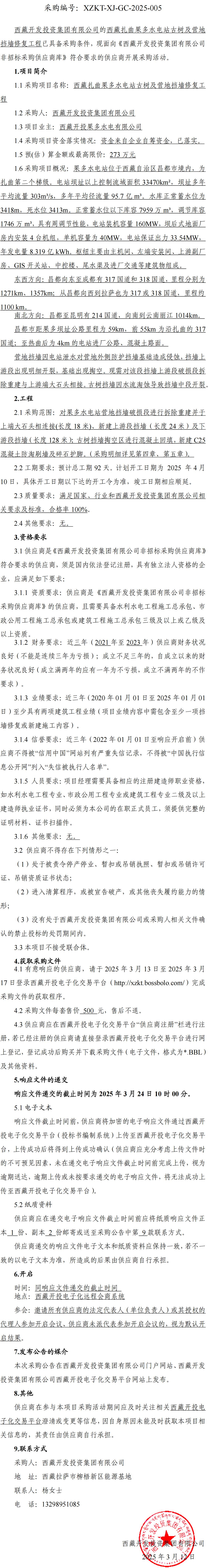 西藏扎曲果多水電站古樹及營地擋墻修復(fù)工程詢價采購公告